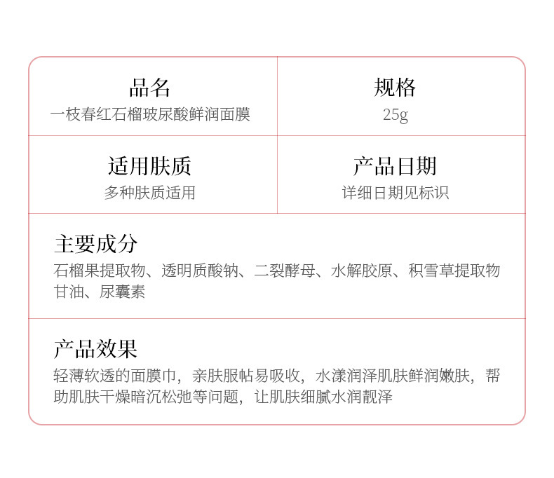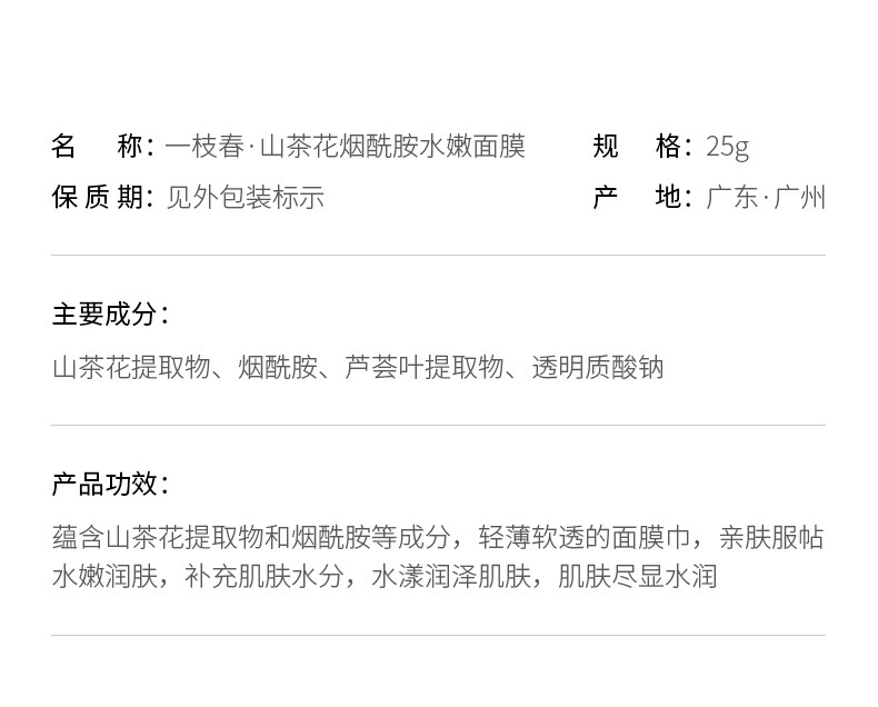 - Product name: Yizhichun Camellia Niacinamide Hydrating Mask