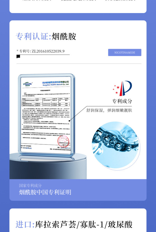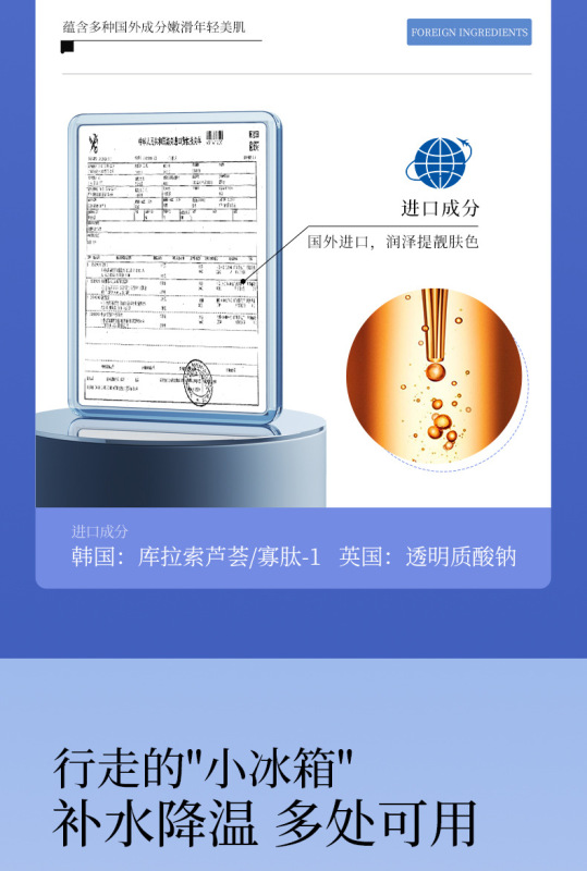 - 化妆品功效:Moisturizing and Hydrating