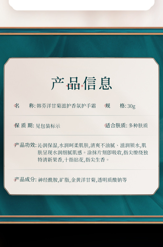 - Product Specifications: Juyu Fragrance Hand Cream 30g