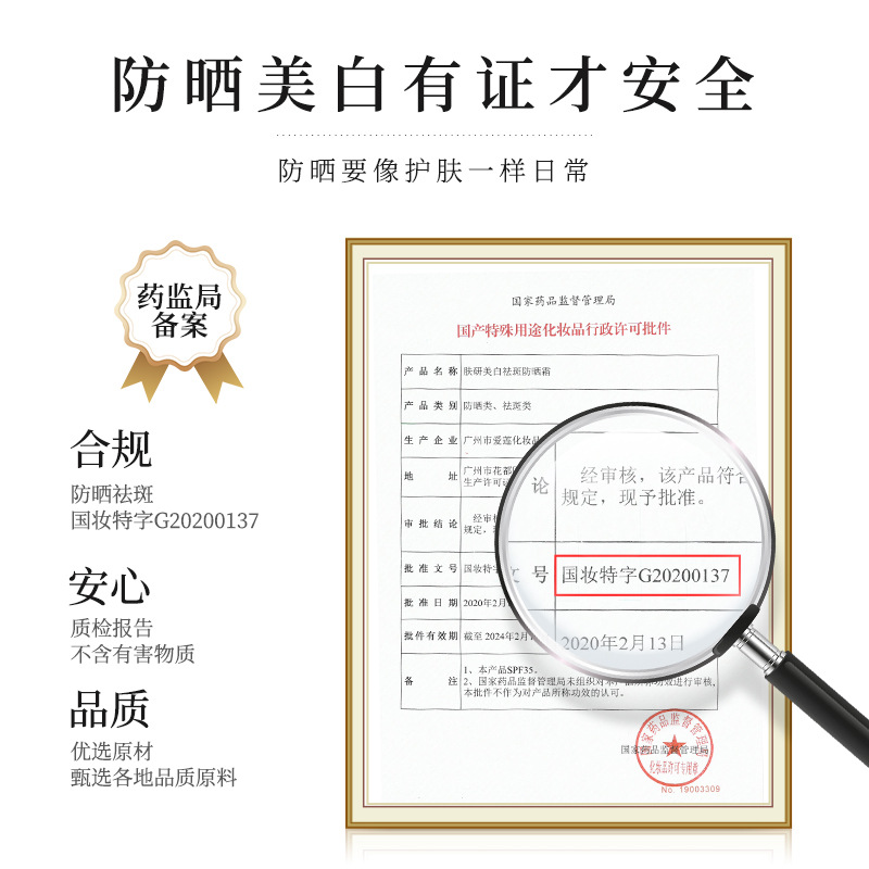 - Special Use Cosmetic Certificate Number: National Cosmetic Special Character G20200137