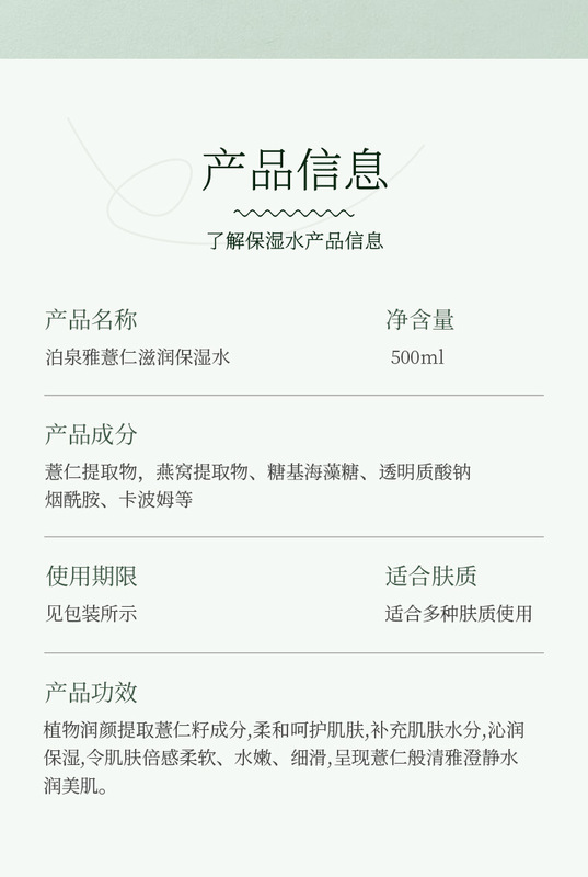 - Product specifications: Boquanya barley moisturizing water 500ml