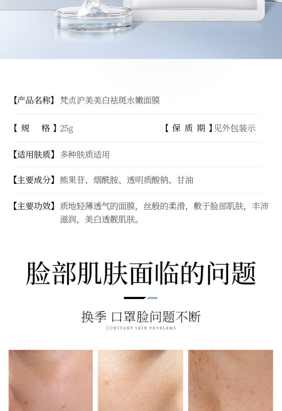 - Product Series: Fan Zhen Hu Mei Whitening and Spot Removal Moisturizing Mask