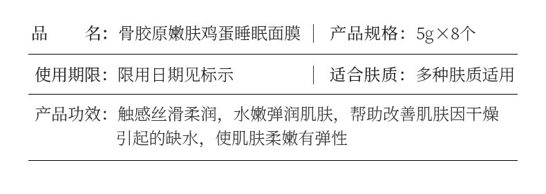 - Product specifications: Collagen rejuvenation egg sleeping mask 5g × 8 pieces