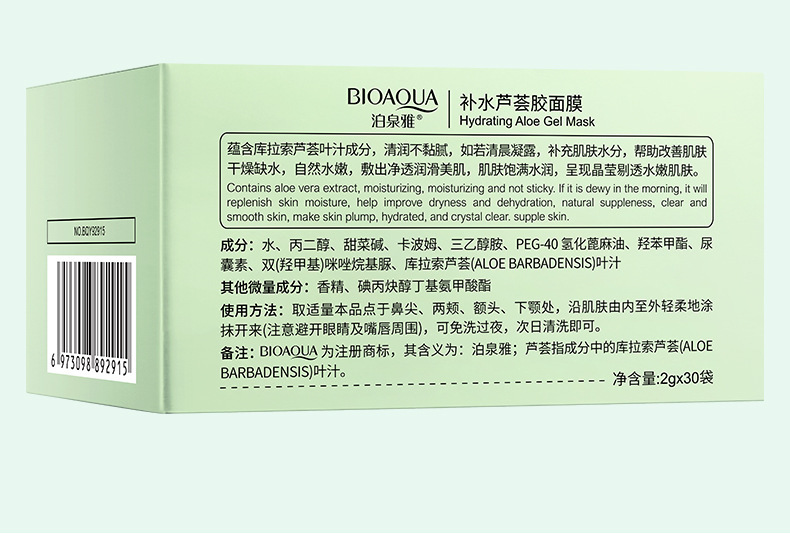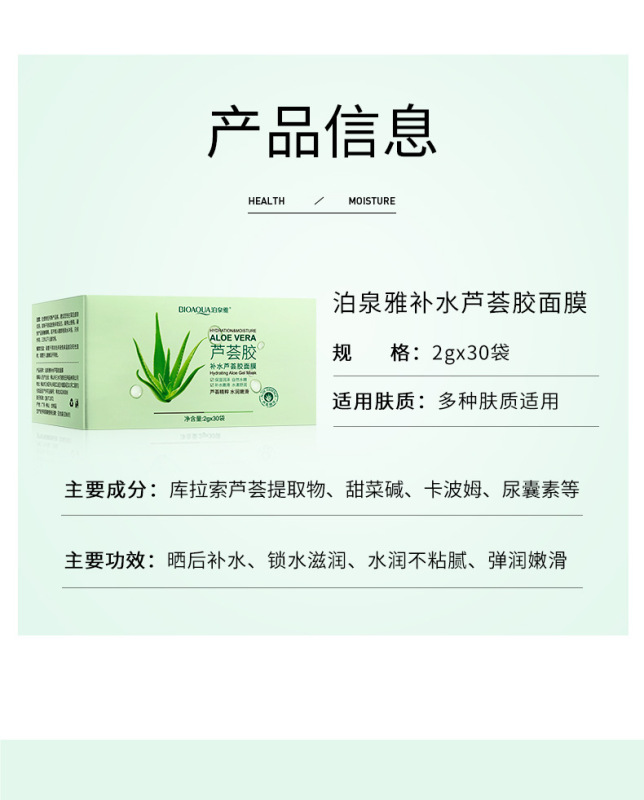 - Product specifications: Hydrating aloe vera gel mask 2g × 30 bags