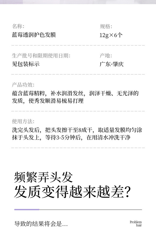 - Net Content: Blueberry Hydrating Color Protecting Hair Mask (New) 12g*6 pcs