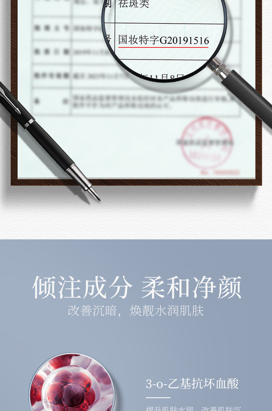 - SpecialUseCosmeticsCertificateNumber: NationalBeautySpecialCharacterG20191516