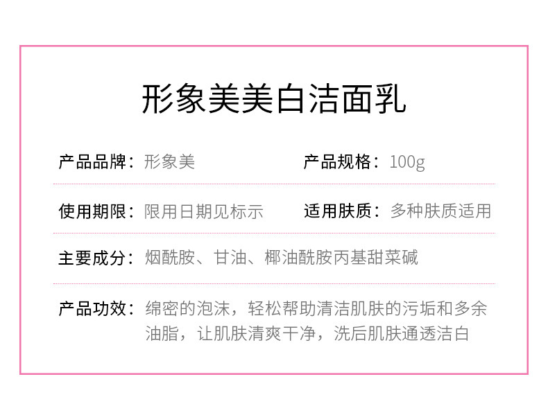 - Product Specifications: Whitening Cleanser 100g