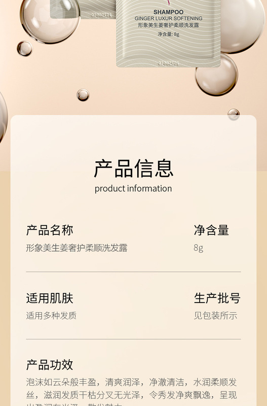 - Net Content: Image Beauty Ginger Shampoo/8g
