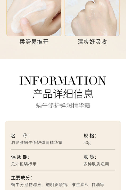 - Product Specification: [Pochun Ya] Snail Essence Cream 50g
