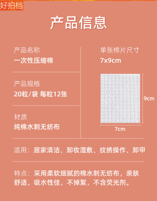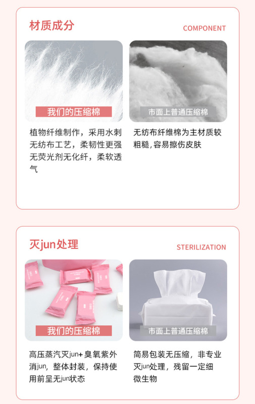 - Specifications: Disposable pink compressed cotton/pellets