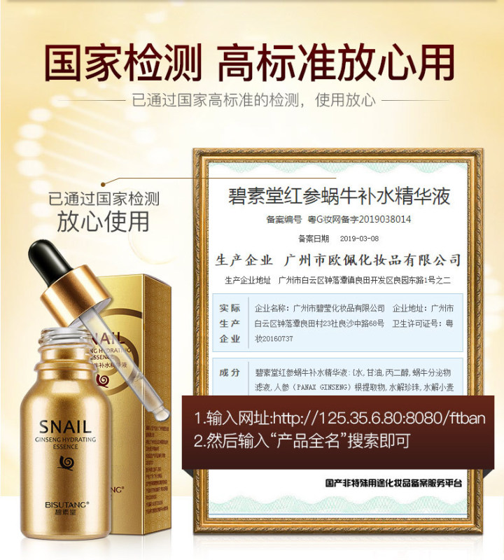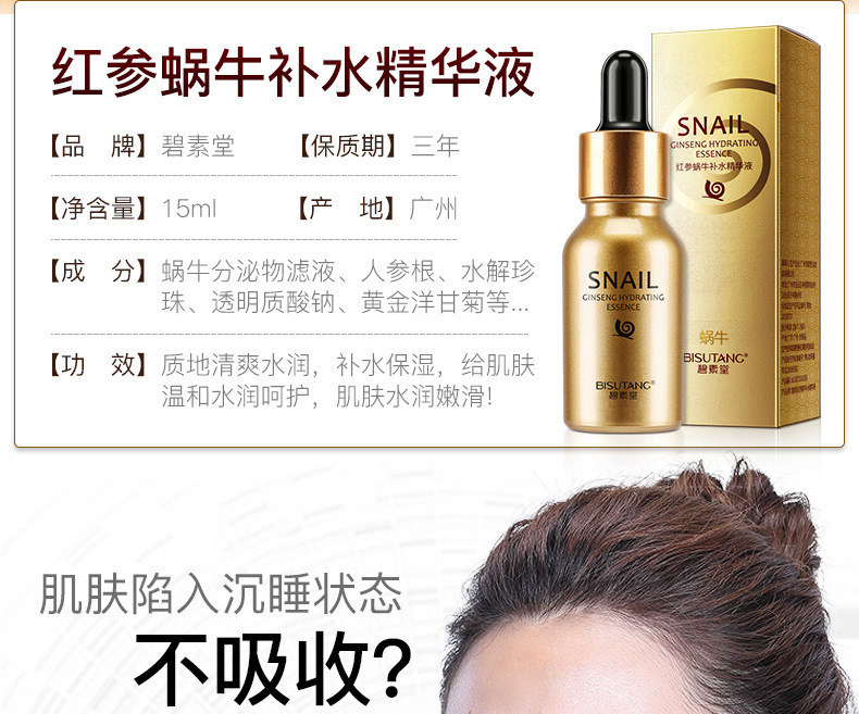 - Product Specification: Bisuotang Red Ginseng Snail Hydrating Essence 15ml