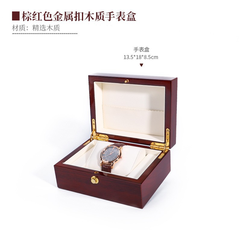 - Specification: Metal Clasp Wooden Watch Box - Brown Red (Inner Brown Red 577)