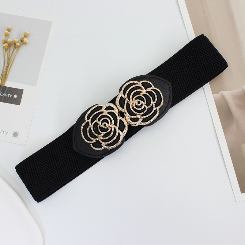 [ Product name]: Flower pattern buckle elastic belt for women decorative dress elastic waistband 4cm
