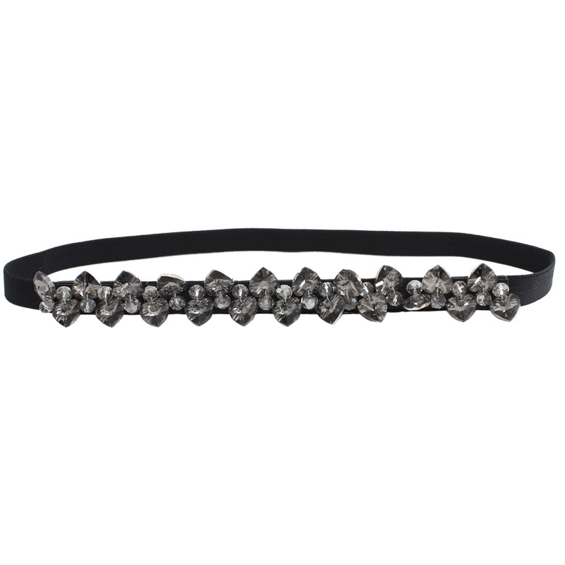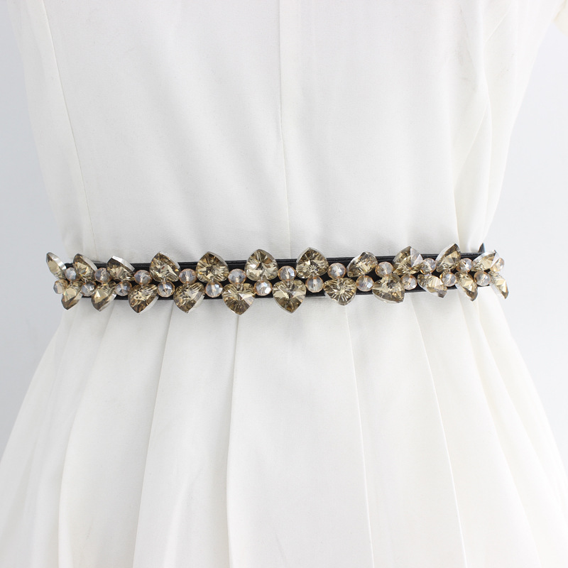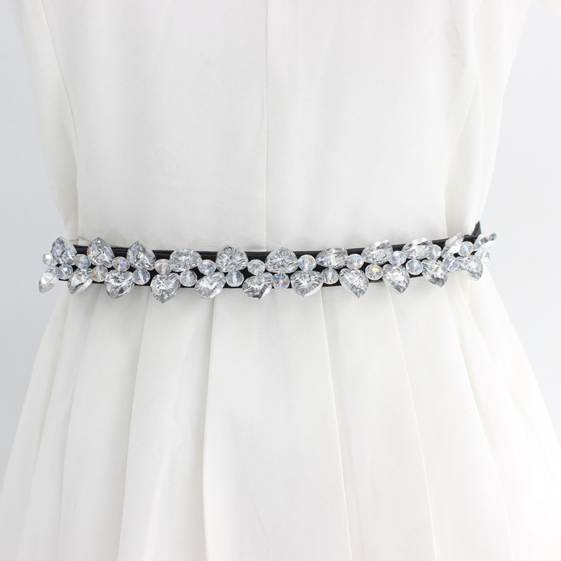 [ Product name]: Women's decorative rhinestone-encrusted crystal dress with versatile elastic thin belt