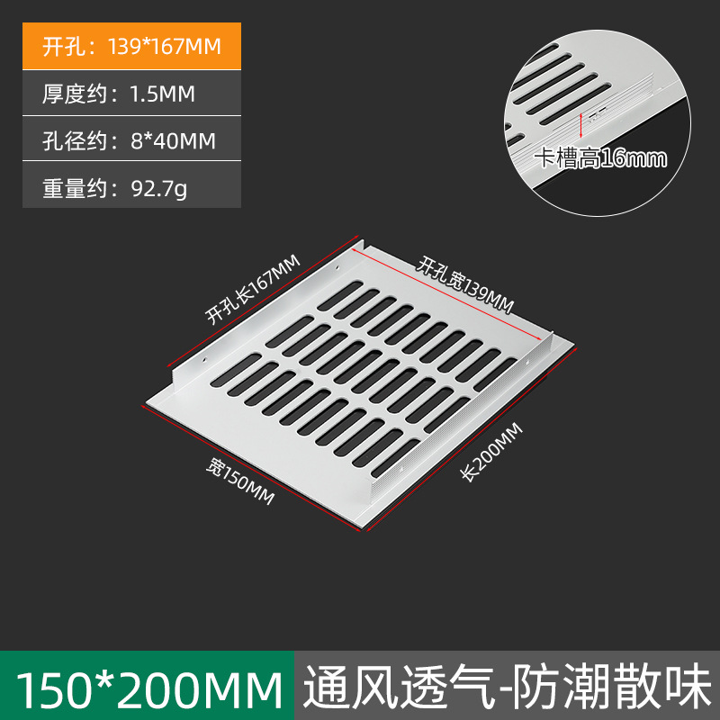 - 規格:150*250鋁合金透氣網-啞光