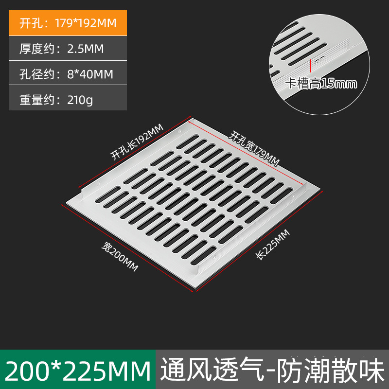 - 規格:200*225鋁合金透氣網-啞光