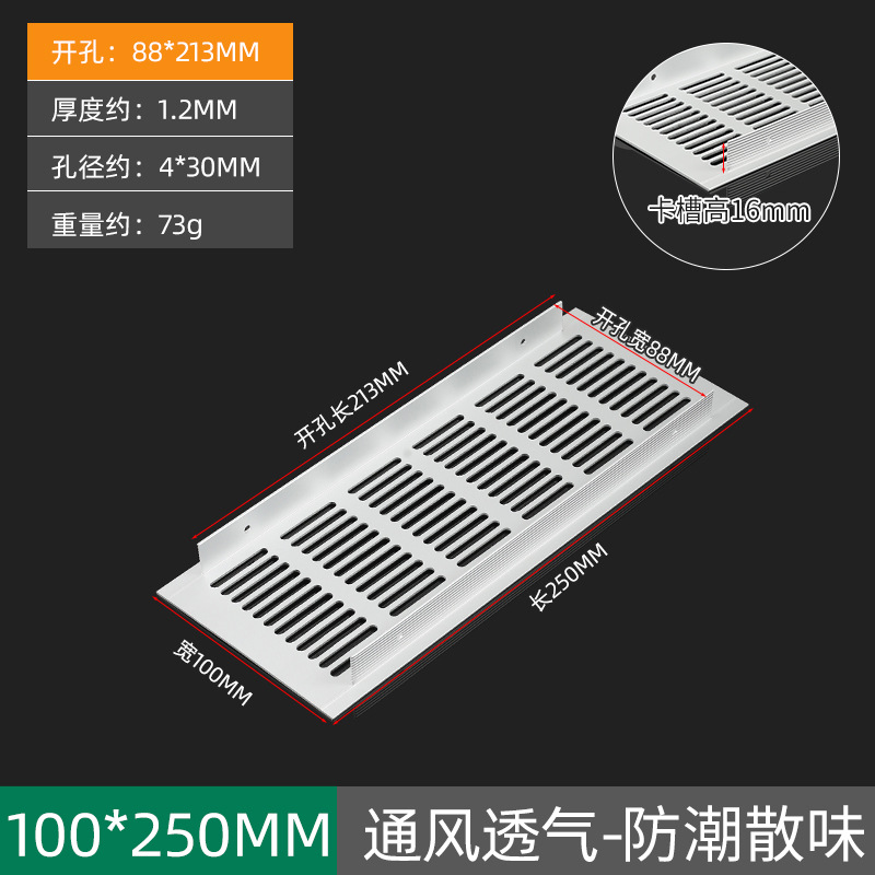 - 規格:100*250鋁合金透氣網-啞光