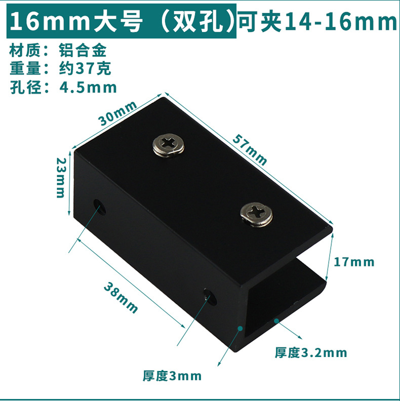 - Specification: Black Aluminum Clip 16*30 (Can Hold 14-16mm)