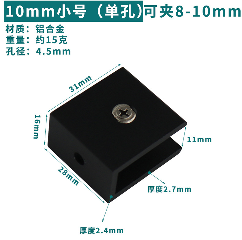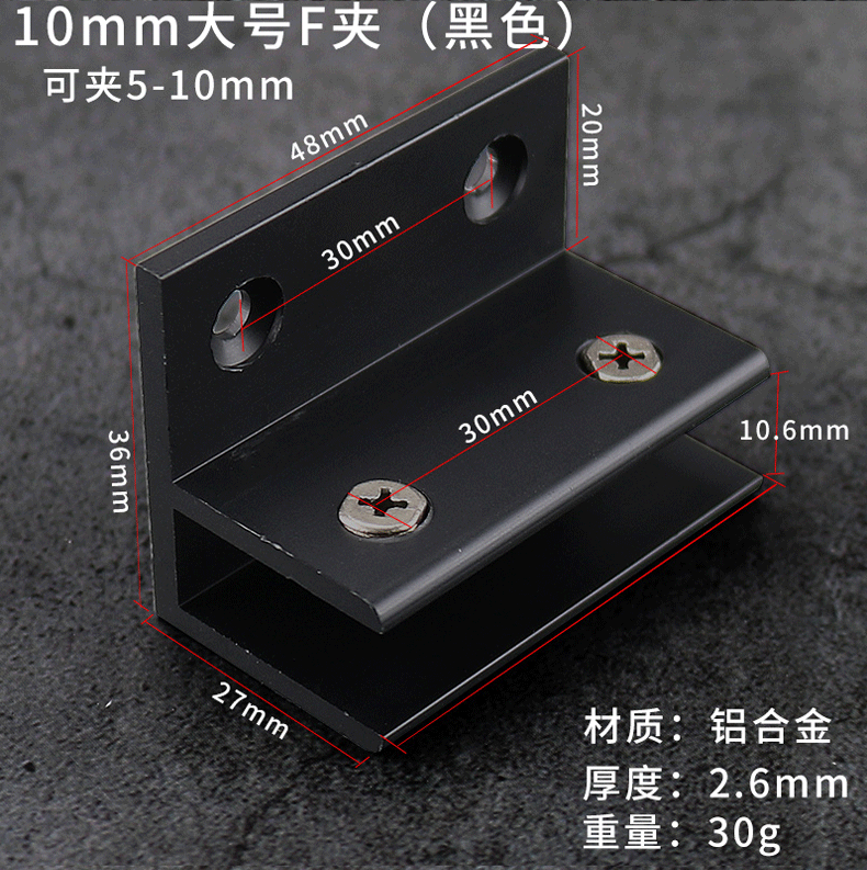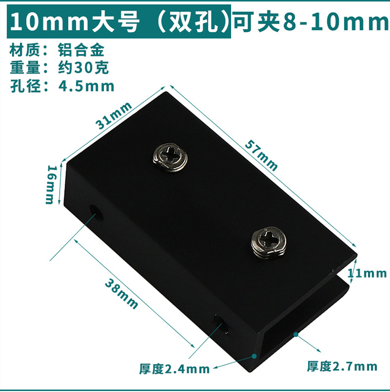 - Specification: Black Aluminum Clip 10*30 (Can Hold 8-10mm)