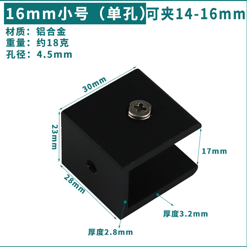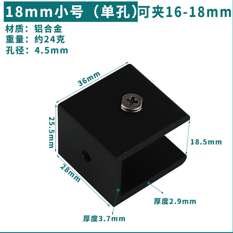 - Specification: Black Aluminum Clip 18*30 (Can Hold 16-18mm)