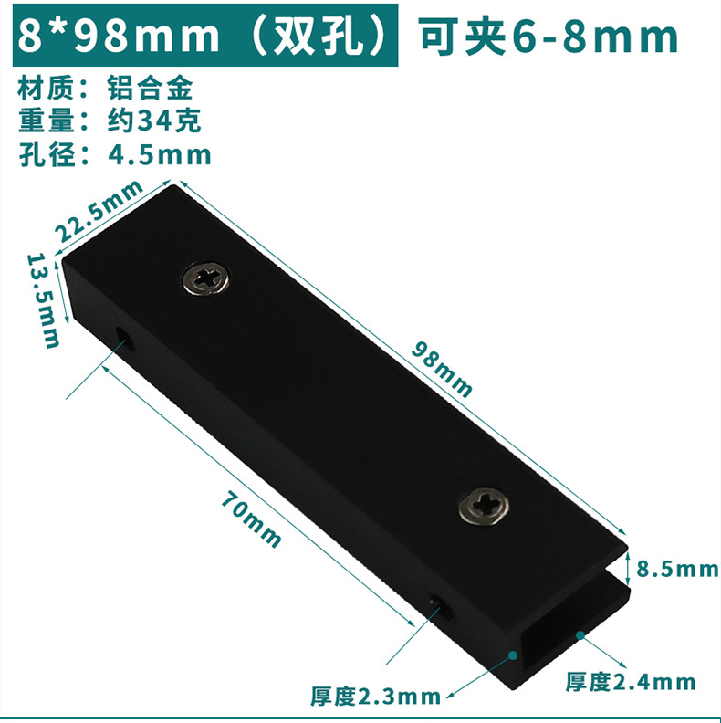 - Specification: Black Aluminum Clip 8*98 (Can Hold 6-8mm)