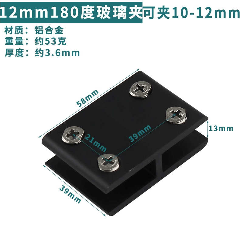 - Specification: Black Aluminum 180-Degree 12mm (Can Hold 10-12mm)