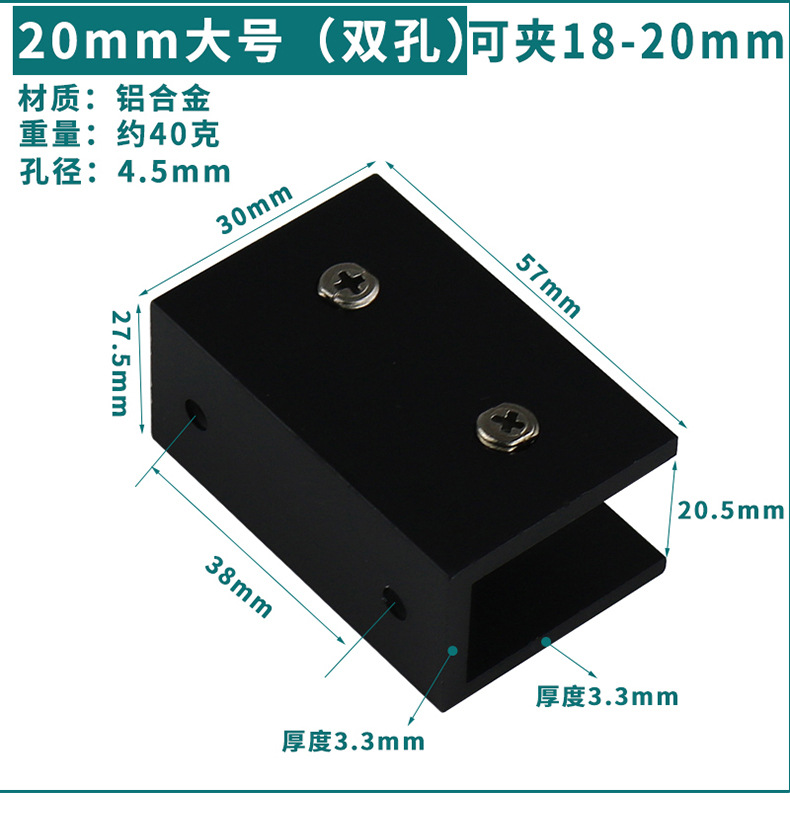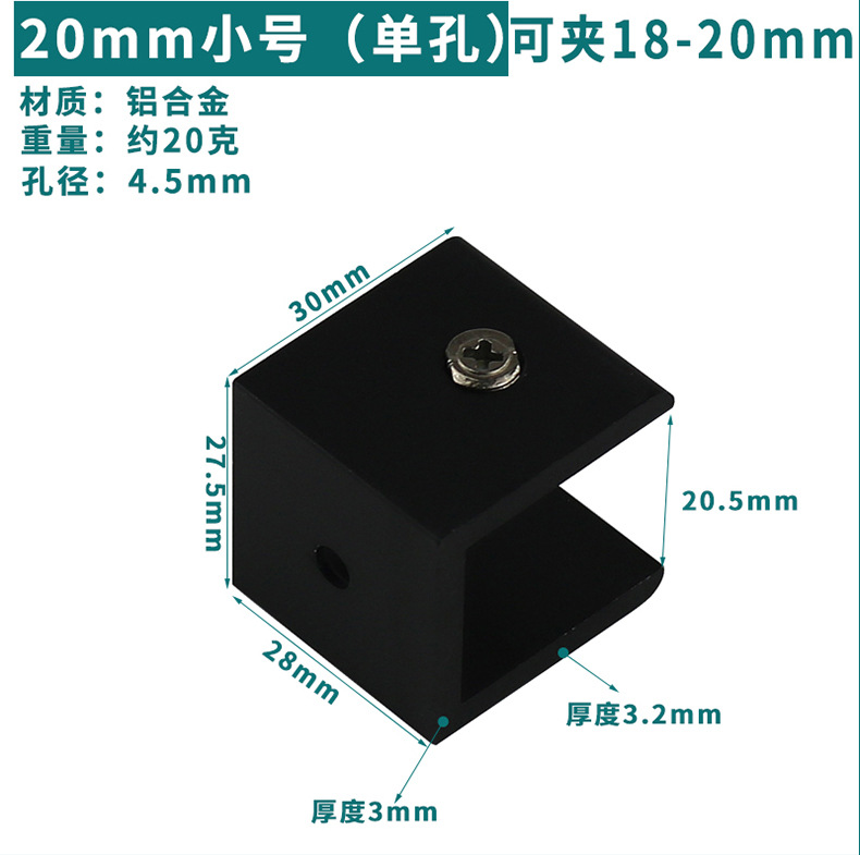 - Specification: Black Aluminum Clip 20*30 (Can Hold 18-20mm)