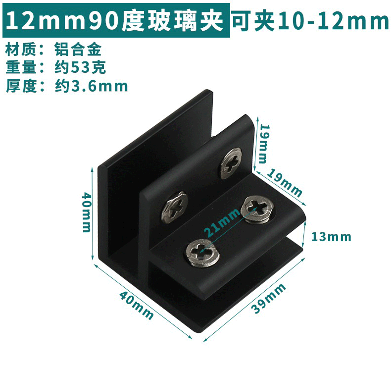 - Specification: Black Aluminum 90-Degree 12mm (Can Hold 10-12mm)