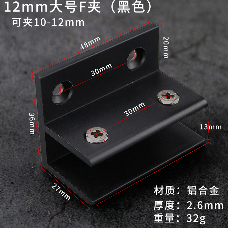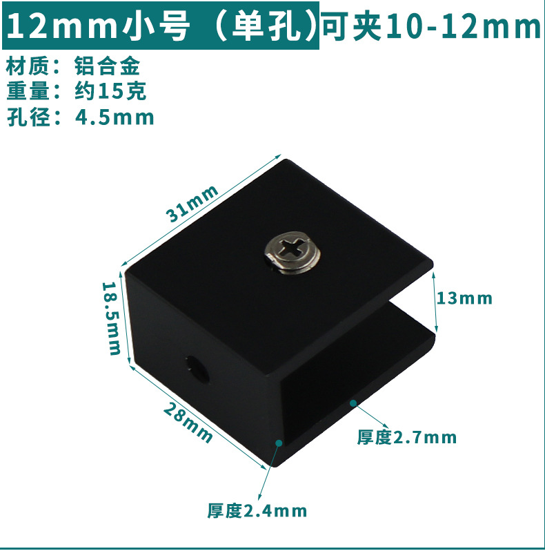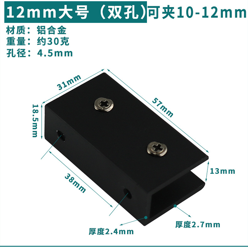 - Specification: Black Aluminum Clip 12*30 (Can Hold 10-12mm)