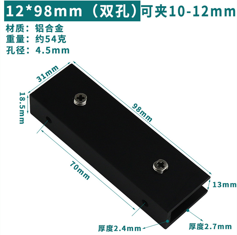 - Specification: Black Aluminum Clip 12*98 (Can Hold 10-12mm)