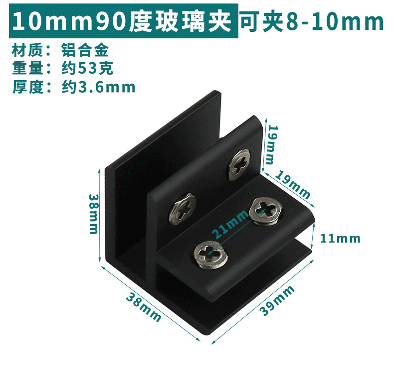 - Specification: Black Aluminum 90-Degree 10mm (Can Hold 8-10mm)