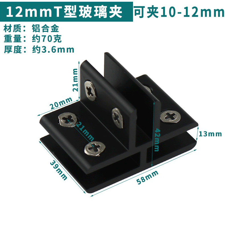 - Specification: Black Aluminum T-Type Triple Clip 12mm (Can Hold 10-12mm)