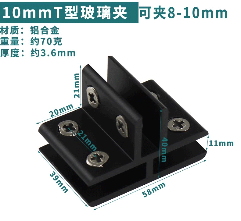 - Specification: Black Aluminum Clip 10*60 (Can Hold 8-10mm)
