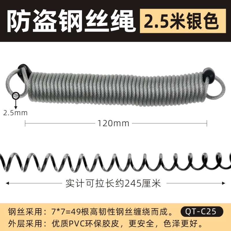 - Specifications: C25 silver anti-theft rope [2.5 meters]