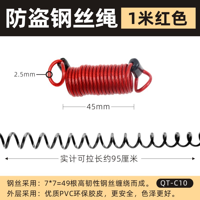 - Specifications: C10 orange anti-theft rope [1 meter]
