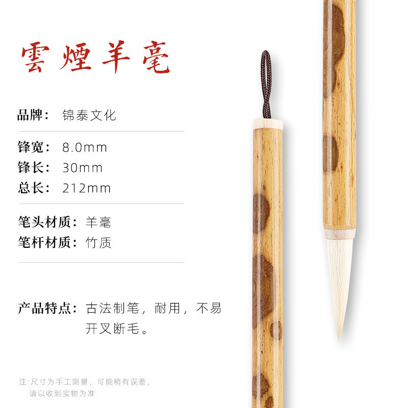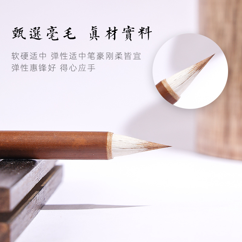 【材質】:玲瓏-紫狼毫(湘妃杆)、雲煙-羊毫(湘妃杆)、追風-兼毫(老竹杆)、鳳舞-兼毫(老竹杆)