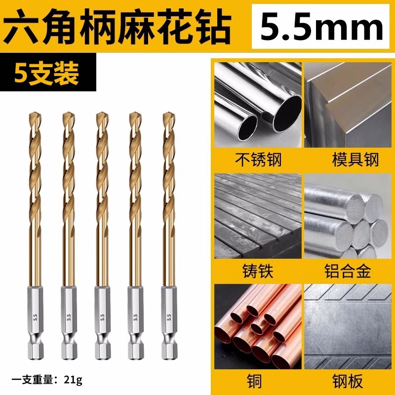 - Model: (hexagonal handle) twist drill 5.5mm (2 pieces)