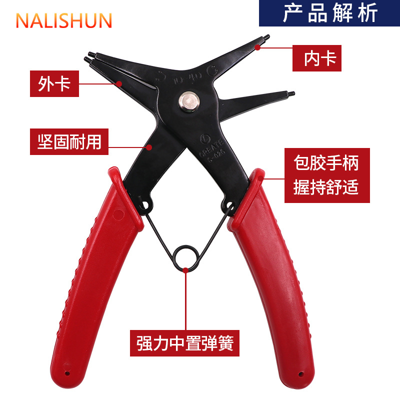 - Specifications: Dual-purpose circlip pliers, red card mounted