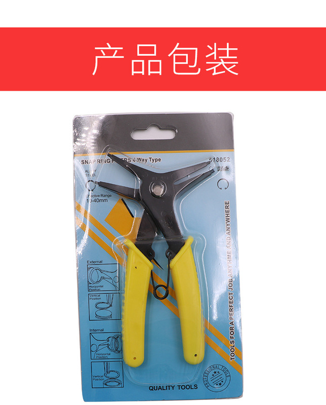 - Specifications: Dual-purpose circlip pliers in yellow bag