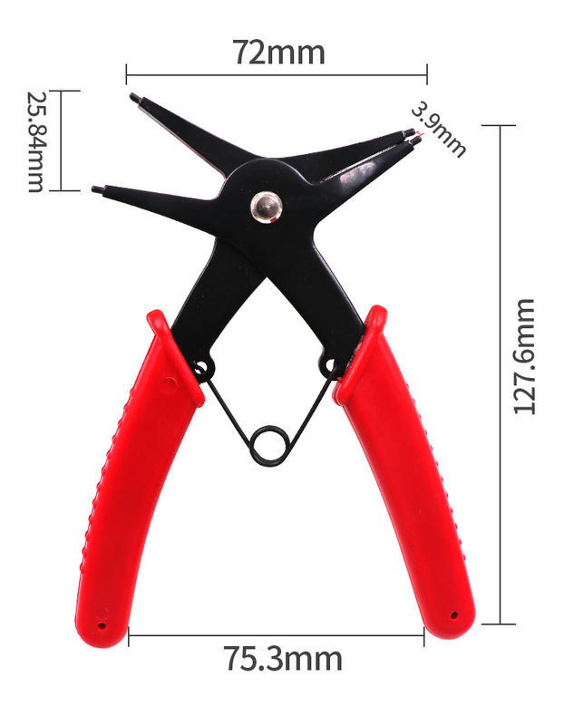 - Specifications: Dual-purpose circlip pliers in red bag
