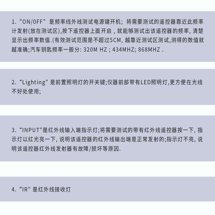 - Specification: Car Remote Key Infrared Frequency Meter
