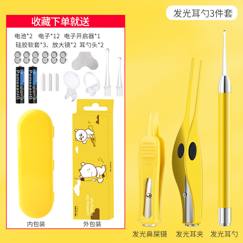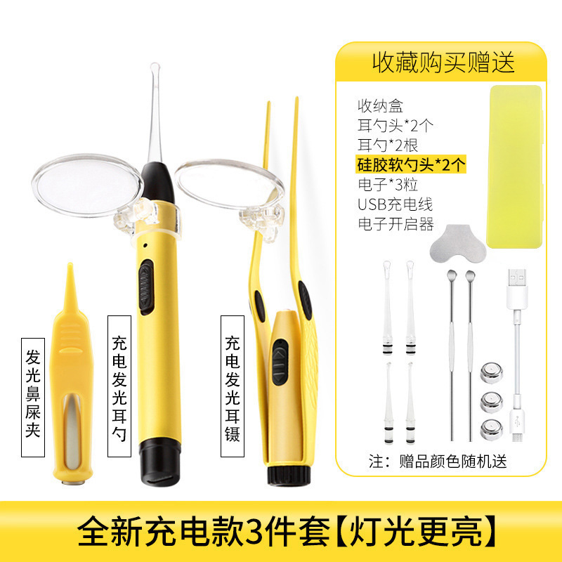- Specifications: 3-piece set of dual light source charging ear picks