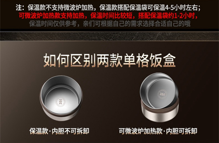 - Specifications: Dark brown 304 microwave style lunch boxes, 3 pieces + thermal bag
