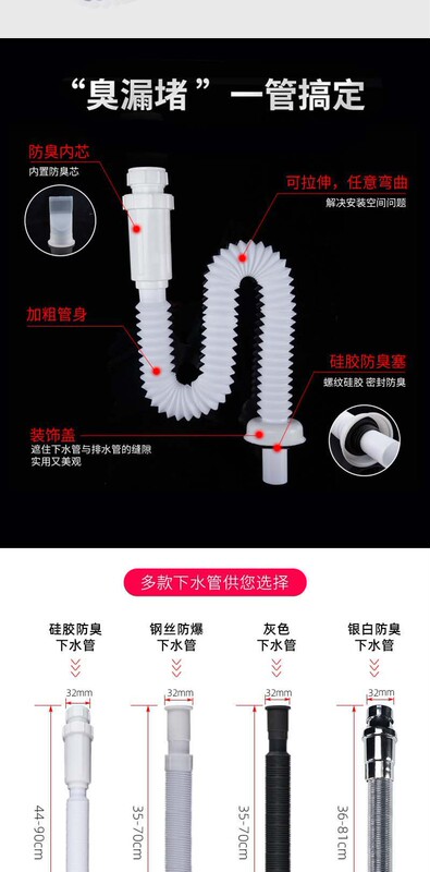 - Specification: New material grey odor-proof with clip band - rubber head basin downpipe, 2 roots per bag, 300 roots per set