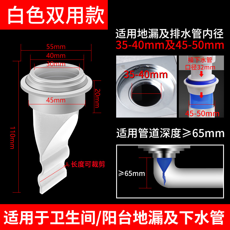 - 規格:白色雙用地漏防臭芯