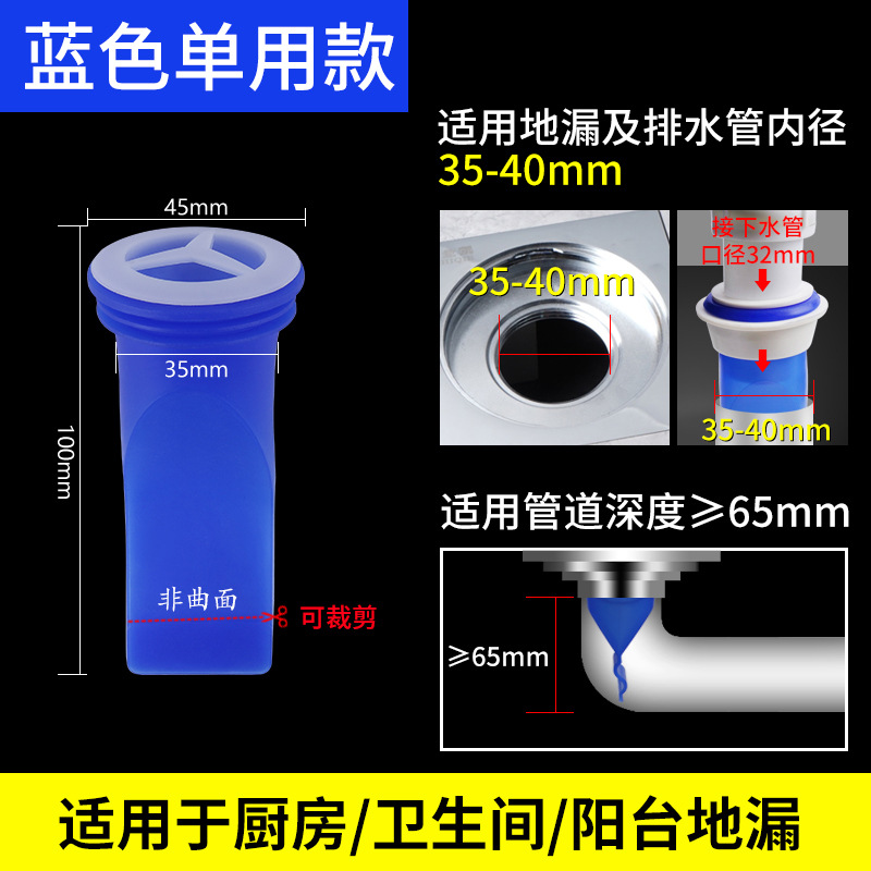 - 規格:藍色雙用地漏防臭芯