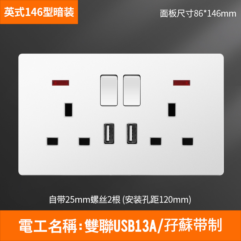 - Model: Type 146 two-way 13A with USB