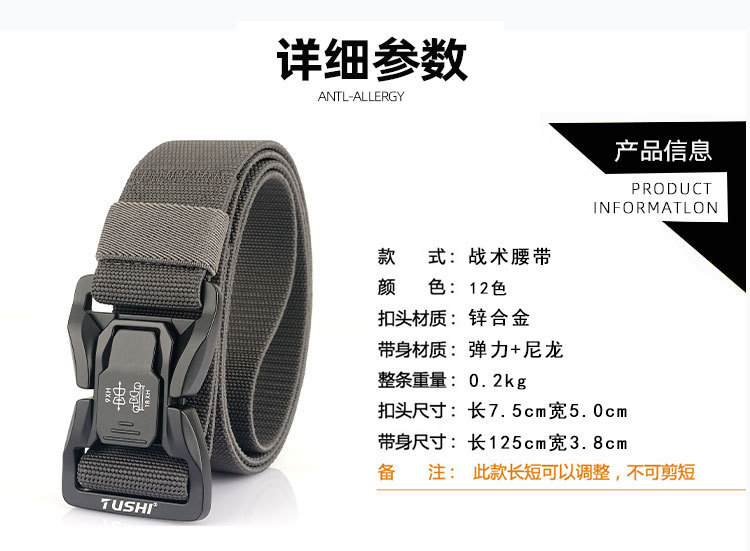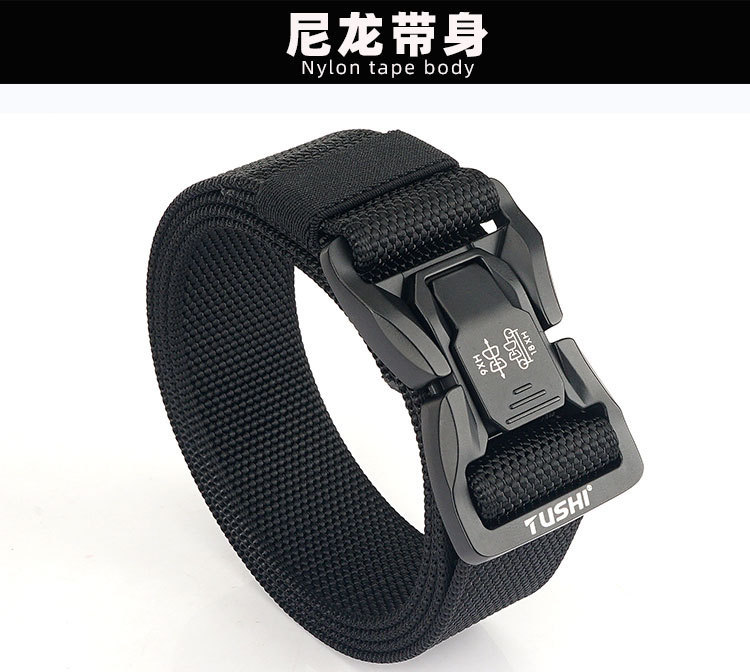 - Design Detail: Quick-release Snap Tactical Nylon Belt