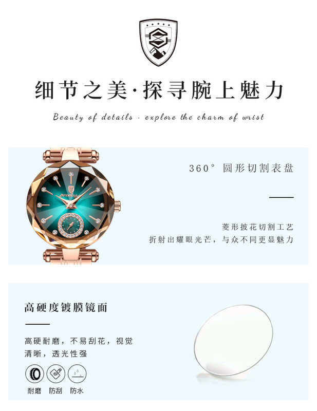 - Mirror material: sapphire crystal glass mirror