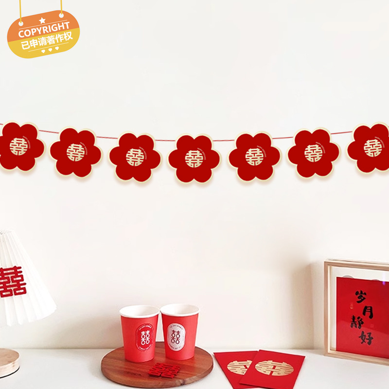 - Specification: Large Flower Double Happiness Decor (10 Sheets/Bundle)